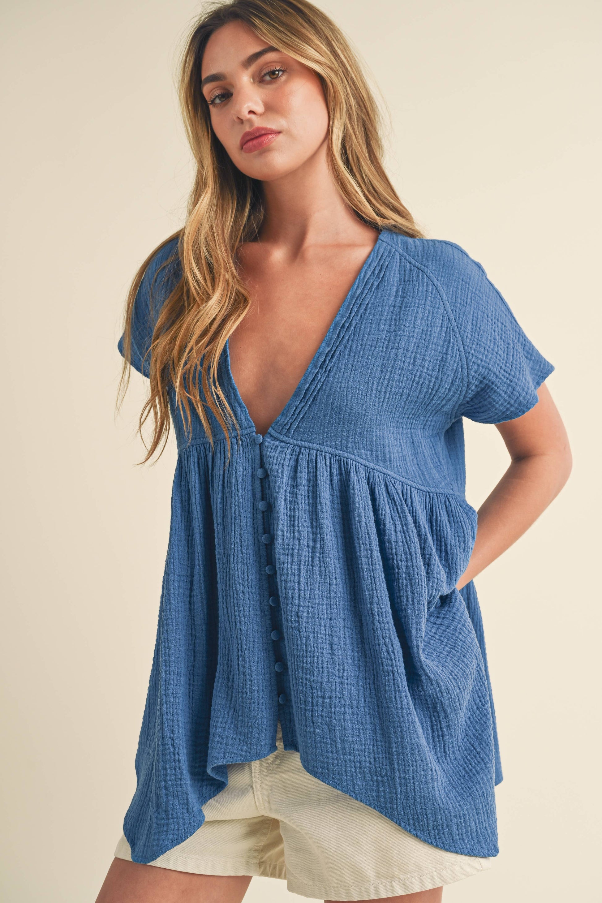 Effortlessly stylish our Willa blouse features pin tuck detailing at the neck and a loose fit for a chic, relaxed vibe.